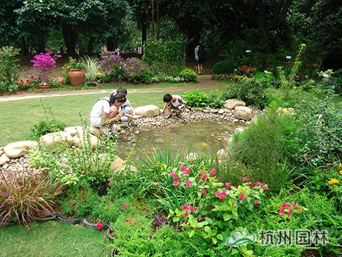 走進園內,蜿蜒的溪流和溪岸邊的景致野趣妙生,一下子撲入視野,清澈的溪水、光滑的卵石、可愛的小蝌蚪,與岸邊的銀邊菖蒲、水生鳶尾、花葉美人蕉、花葉蘆竹等水生植物一起,營造出生態(tài)、自然的河流景觀?!斑@條溪流,其實是我們杭州的母親河——錢塘江的縮影,通過這條溪流的營造,我們想呼吁更多的人保護生態(tài)、愛護環(huán)境,讓我們的母親河永遠干凈、清澈?!惫绾喍痰脑捳Z中,透露出的是一名園林人渴望更多人關注水生態(tài)環(huán)境的殷殷期盼。
