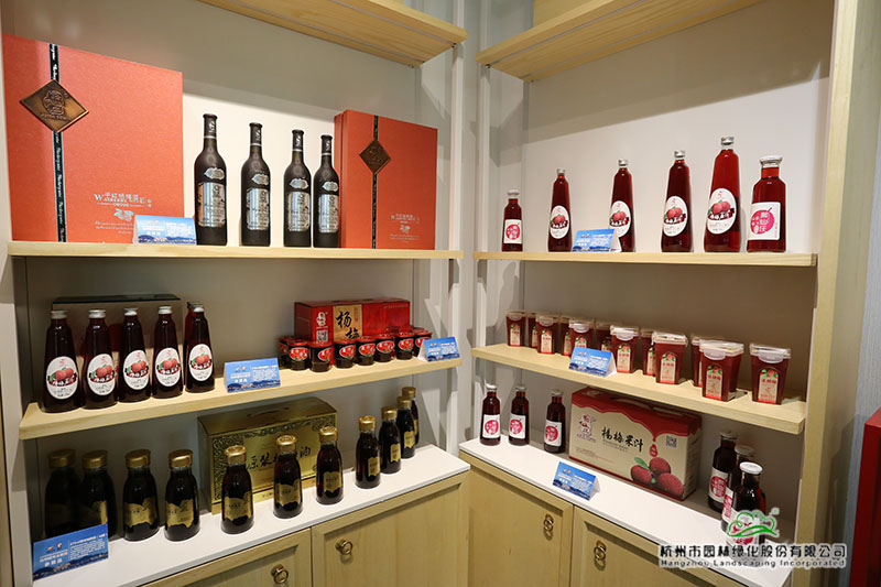負一層展廳內(nèi),不僅循環(huán)播放著臺州城市形象、旅游景區(qū)、山海風(fēng)光、生態(tài)文明建設(shè)、“兩山”理論成果的宣傳片,還展示了臺州特色的茶葉、烏藥黃精、楊梅制品、無患子系列產(chǎn)品、木竹工藝品等特色林產(chǎn)品。