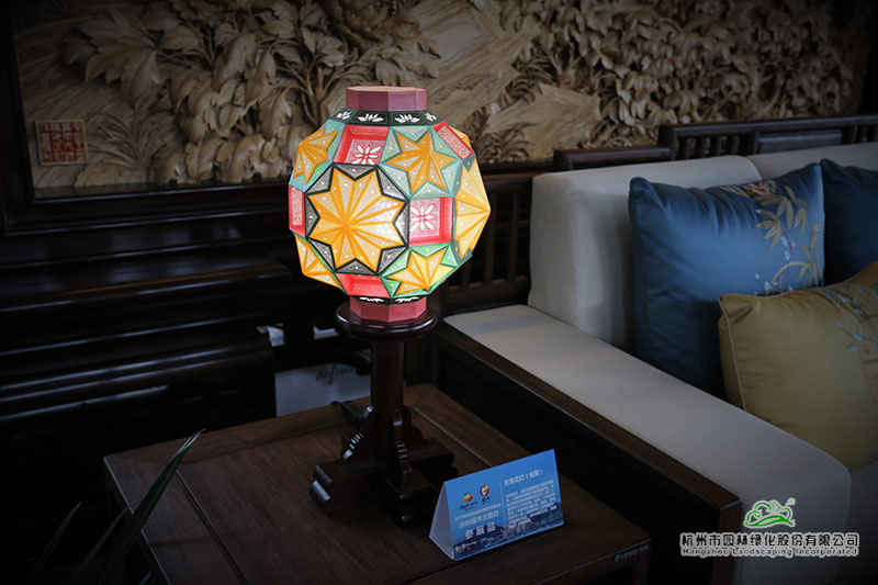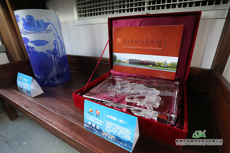 在以浙派民居為風(fēng)格的主題建筑“富春山居”內(nèi),展示著來自仙居的無骨花燈、溫嶺的石雕、黃巖的翻簧竹雕、椒江的臺州玻雕、臺州刺繡等精美的展品。
