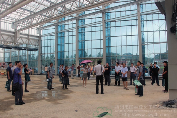 廠商代表參觀正在建設(shè)中的青山湖?花園中心玻璃溫室大棚