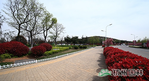 為恢復(fù)植被,修復(fù)裸露的山體,工程中應(yīng)用了大量的植物,其中,榔榆、喜樹(shù)、樸樹(shù)、三角楓、黑松、香樟、銀杏、無(wú)患子、女貞、欒樹(shù)、七葉樹(shù)、五角楓、楓香、雪松、烏桕、廣玉蘭、黃連木、黃金槐、馬褂木等喬木50余品種,2.3萬(wàn)余株,鄉(xiāng)土樹(shù)種占88%;垂絲海棠、映山紅、櫻花、紫薇、金絲繡球、含笑、紫葉李、茶梅、紅梅、紅櫨等花灌木100余品種,2.5萬(wàn)余株;紅葉石楠、金森女貞、扶芳藤、南天竹、灑金珊瑚、水果蘭、六道木、檉柳、衛(wèi)矛、無(wú)刺枸骨、毛鵑、連翹、金鐘、迎春、紅花檵木等綠籬40余品種,面積約4.1萬(wàn)平方米;各種宿根、球根、時(shí)令花卉和水生植物,如薰衣草、金雞菊、郁金香、鳶尾、牡丹、金絲桃、珍珠梅、繡線菊、美人蕉、荷蘭菊、蒲公英、亞菊、玉龍草、八仙花、瓊花、月季、薔薇等80余品種,面積約2.8萬(wàn)平方米;鋪設(shè)草坪及地被麥冬等面積約8.7萬(wàn)平方米。豐富的植物應(yīng)用,使得原本裸露的山坡披上了綠色的盛裝,公園內(nèi),春有百花爭(zhēng)艷,夏有綠蔭匝地,秋有金色滿園,即使到了冬天,也仍能看到滿山的綠色與生機(jī)。