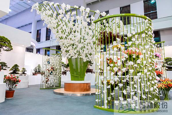 館內(nèi)用大量的白色蝴蝶蘭花朵和仿竹構(gòu)筑物打造的立體景觀,在展示浙江竹產(chǎn)業(yè)發(fā)展的同時,更展現(xiàn)了“綠水青山就是金山銀山”理念在浙江的生動實踐。