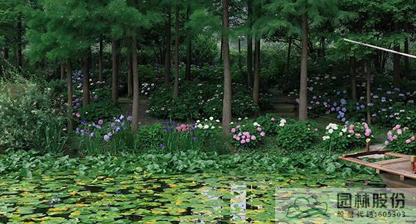 分割成濱水、林下等多種空間,與繡球形成不同互動;