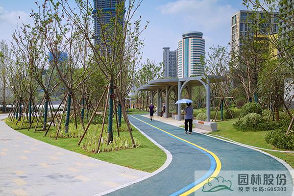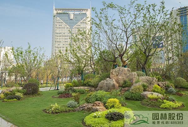 項(xiàng)目注重新優(yōu)植物的應(yīng)用,行道樹(shù)采用娜塔莉、中心廣場(chǎng)通道兩側(cè)綠地種植美國(guó)紅楓、中心廣場(chǎng)內(nèi)種植銀杏樹(shù)等色葉樹(shù)種。翠綠的枝葉相互掩映,樹(shù)下設(shè)有林蔭座凳,夏季可有“大樹(shù)成蔭”之景,市民可觀賞可乘涼,充分感受自然野趣。主道路行道樹(shù)為染井吉野等開(kāi)花與色葉樹(shù)種,周邊綠地采用混合花境置石結(jié)合的配置手法,時(shí)花、低矮花灌木與景石自然搭配,并大量應(yīng)用了公司自主研發(fā)的繡球新品種,營(yíng)造景觀豐富的長(zhǎng)效花境景觀。
